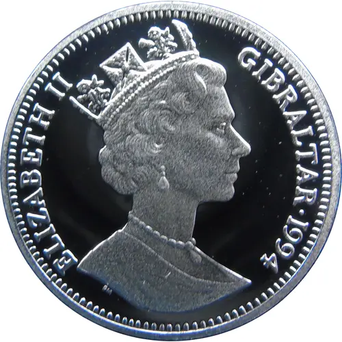 | Legenda do anverso | ELIZABETH II GIBRALTAR·1994 RDM PM |