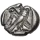 | توضیحات پشت سکه | Owl standing right, head facing; crook and flail over shoulder; all in outline incuse within incuse square. |