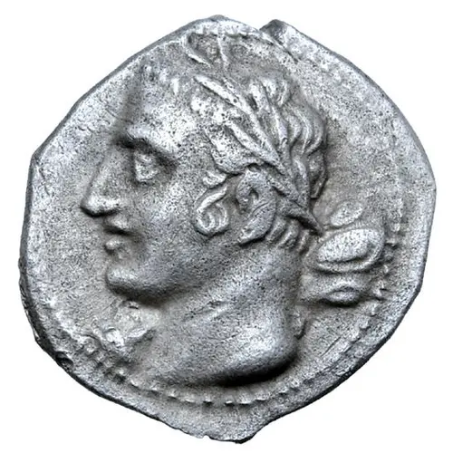 | توضیحات روی سکه | Laureate head left (Melqart or Hasdrubal), with club over right shoulder. |