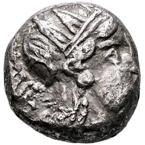 | Obverse description | Head of Athena to right, wearing crested Attic helmet decorated with three olive leaves |