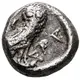 | Reverse description | Owl standing right, head facing left, olive sprig and crescent; all within round incuse |