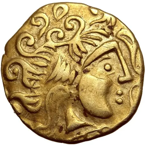 | Descripción del anverso | Stylised head of Apollo to right; double volute before, club below chin, zig-zag line with pellets below. |