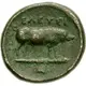 | توضیحات پشت سکه | Name of the city above, a pig standing right on bacchos with an astragalos in exergue |
