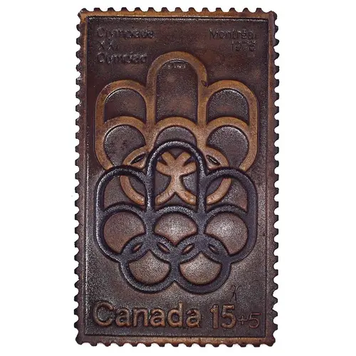 | Obverse description | Logo of the Montreal Olympic Games in debossed and embossed. |