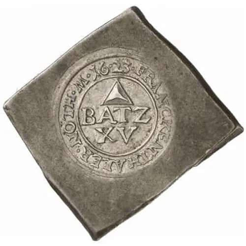 | نوشتههای روی سکه | BATZ // XV FRANCKENTHALER • NOTH • M • 16 • 23. |
