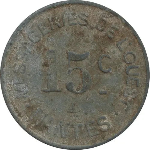 | Obverse lettering | MESSAGERIES DE L`OUEST 15c NANTES |