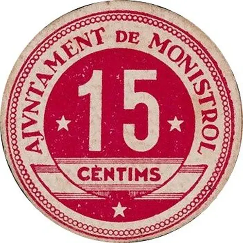 AJUNTAMENT DE MONISTROL 15 CÈNTIMS (Translation: City Council of Monistrol 15 Centimos) |