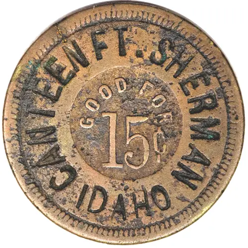 | Obverse lettering | GOOD FOR 15 c CANTEEN FT> SHERMAN IDAHO |
