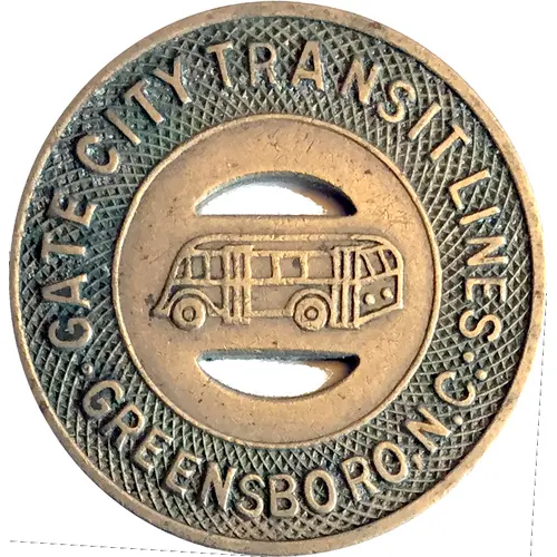 | Obverse lettering | .GATE CITY TRANSIT LINES. GREENSBORO, N.C. |