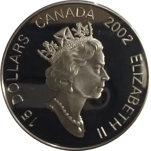 | Obverse lettering | 15 DOLLARS CANADA 2002 ELIZABETH II |