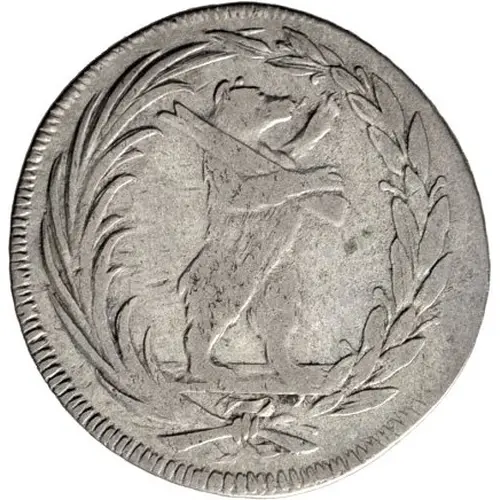 | Obverse description | Rampant bear holding log facing right within wreath. |