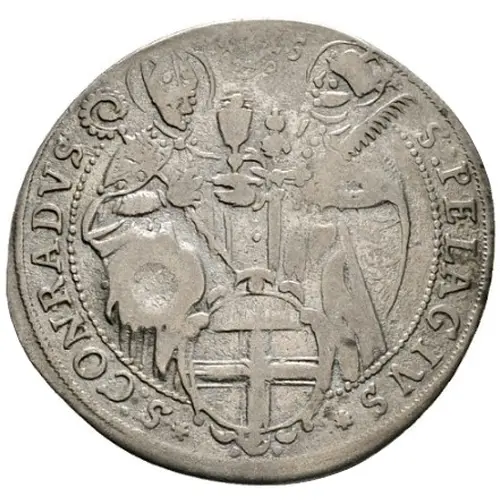 | Obverse description | Saints Pelagius and Conrad behind city arms. |