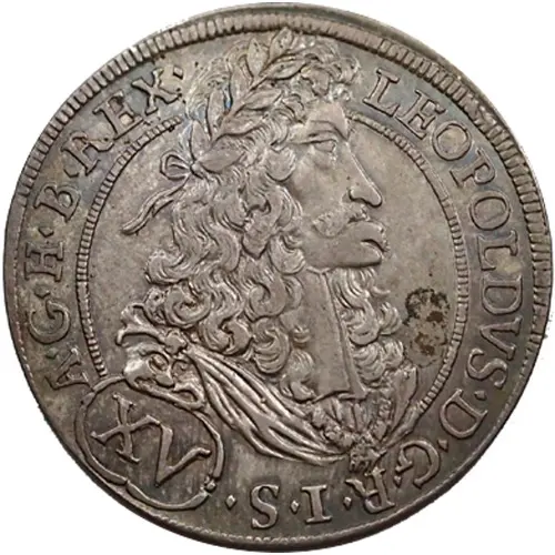 | Obverse description | Laureate portrait of Leopold I facing right, curly wig, the top of the head divides the legend. Value in roman numerals in a circle under the bust. Legend (starts 1h) for `Leopoldus Dei Gratia Romanorum Imperator Semper Augustus Germaniae Hungariae Bohemiae Rex` |