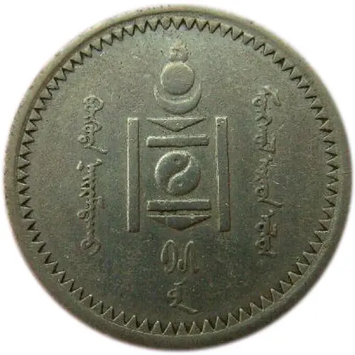 Artistry: The 1925 15 Möngö coin’s design blends early Soviet-influenced utilitarianism with potent national symbolism. While the engraver is uncredited, typical for the era, production likely occurred at the Leningrad Mint. The obverse prominently features the Soyombo symbol, Mongolia's national emblem signifying freedom and independence, alongside the year '1925'. The reverse displays the denomination '15 MÖNGÖ' in traditional Mongolian script, encircled by a stylized wreath. The design is clean and direct, characteristic of revolutionary states establishing monetary identity.