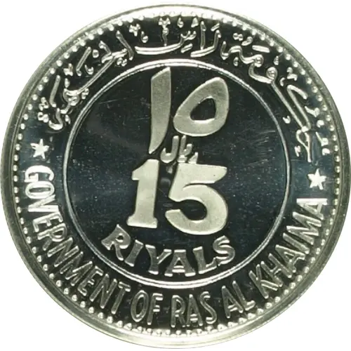 Historical Context: This 15 Riyals coin, issued by Ras al-Khaimah in 1970, commemorates the FIFA World Cup held in Mexico that year. Under the rule of Sheikh Saqr bin Mohammed al-Qasimi, this period predates the formation of the United Arab Emirates, marking a time when individual emirates exercised independent monetary authority. Such international commemorative issues served to project the emirate's presence on the global stage and engage with popular culture, diversifying their numismatic output beyond traditional circulating currency.