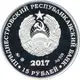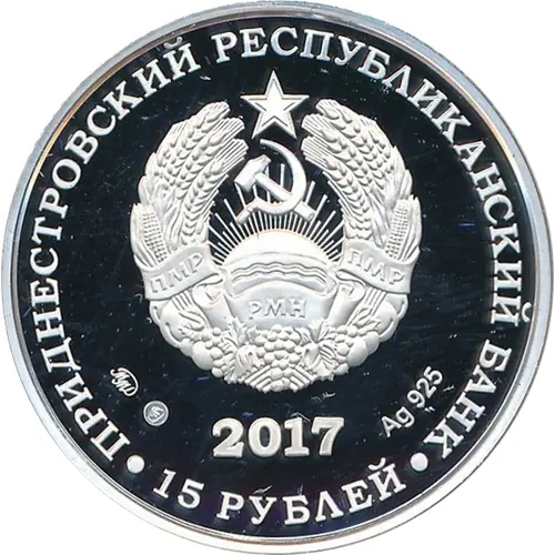 | Obverse lettering | ПРИДНЕСТРОВСКИЙ РЕСПУБЛИКАНСКИЙ БАНК ММД 2017 Ag 925 • 15 РУБЛЕЙ • (Translation: Transnistrian Republican Bank MMD 2017 Ag 925 15 Rubles) |