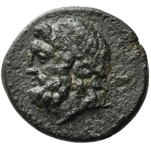Beschrijving voorzijde Diademed head of Poseidon, left.