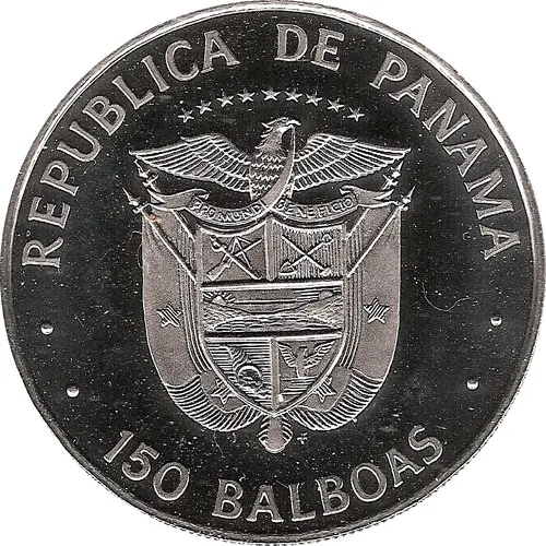 | Obverse lettering | REPUBLICA DE PANAMA ********* PRO MUNDI BENEFICIO FM 150 BALBOAS (Translation: Republic of Panama For the Benefit of the World) |