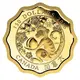 The reverse features a design by Canadian artists Chris and Rosina Reid in the distinctive artistic style of traditional Chinese paper cutting. The inspiring design centres on a monkey, whose curiosity and energetic ways are the embodiment of the desire to taste the flavours of a full and healthy life. In the monkey`s hand is a peach; this sacred symbol of longevity and immortality is regarded as the divine fruit of gods, and expresses a wish for a long life. The monkey is at the base of a peach tree, which is covered with eight additional peaches and nine peach blossoms—an auspicious number, as the number `9` is associated with royalty and has often been used in ancient Chinese art to convey best wishes and longevity. Above and to the right of the monkey is a Chinese symbol that conveys the blessing of `health`. The face value `150 DOLLARS`, the year `2016`, the word `CANADA` and the Chinese characters for `CANADA` are all engraved within the outer band that frames the image field. |