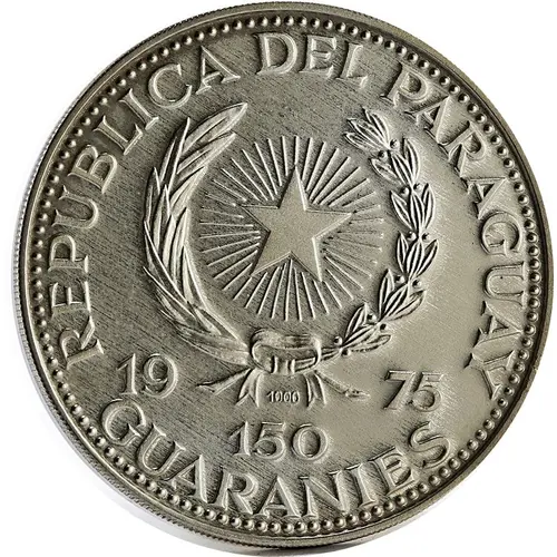 | Obverse lettering | REPUBLICA DEL PARAGUAY 19 75 150 GUARANIES (Translation: Republic of Paraguay 19 75 150 Guaranies) |