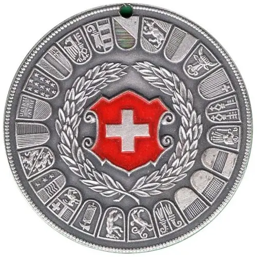 | Obverse description | Coat of arms of the Swiss cantons in a circle. In the centre, shield of Switzerland surrounded by a crown formed by two laurel branches. |