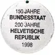 150 JAHRE BUNDESSTAAT 200 JAHRE HELVETISCHE REPUBLIK 1998 (Translation: 150 years of the Federal State. 200 years of the Helvetic Republic.) |
