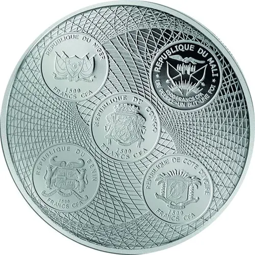 REPUBLIQUE DU NIGER 1500 FRANCS CFA REPUBLIQUE DU MALI 1500 FRANCS CFA UN PEUPLE.UN BUT.UNE FOI REPUBLIQUE DU CONGO 1500 FRANCS CFA REPUBLIQUE DU BENIN 1500 FRANCS CFA REPUBLIQUE DE COTE D`IVOIRE 1500 FRANCS CFA (Translation: Republic of Niger Republic of Mali One People One Goal One Faith Republic of Congo Republic of Benin Republic of Ivory Coast) |