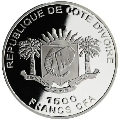 | Averslegende | REPUBLIQUE DE COTE D`IVOIRE 1500 FRANCS CFA (Translation: Republic of Ivory Coast) |
