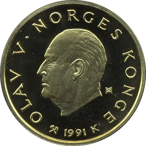 | 正面铭文 | OLAV V·NORGES KONGE 1991 K ØH (Translation: Olav V, King of Norway) |