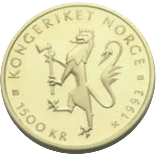 | Legenda do anverso | KONGERIKET NORGE 1500 KR 1993 K IAR (Translation: Kingdom of norway) |