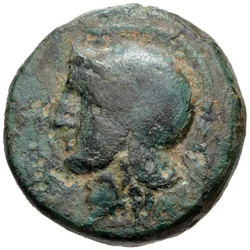 | Reverse description | Owl standing facing left, with head facing. Boukranion and olive spray to the left and inscription on the top right field |
