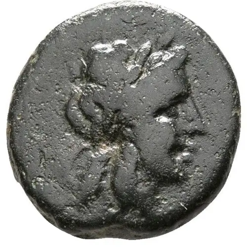 توضیحات روی سکه Laureate head of Apollo right