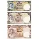 The 1 Baht features a portrait of His Majesty`s childhood, the portrait of Their Majesties the King Rama VIII and King Rama IX on their return to Thailand in 1945, the portrait of His Majesty during his study in Switzerland, the Royal Emblem in Commemoration of the Celebrations on the Auspicious Occasion of the His Majesty the King`s 80th Birthday Anniversary 5th December 2007, the Royal Garuda Emblem, and the Temple of the Emerald Buddha and the Grand Palace, and the Villa Vadhana in Switzerland. The 5 Baht features a portrait of Their Majesties on royal wedding day, the portrait of His Majesty in the coronation, and the ordination, the portrait of the Royal Family, the portrait of Crown Prince Maha Vajiralongkorn, the portrait of Their Majesties performing royal activities, the picture of a Royal Rainmaking Project`s plane, and the portraits of His Majesty playing the Saxophone and painting. The 10 Baht features a portrait of His Majesty in the Investiture of H.R.H. Princess Maha Chakri Sirindhorn, the portrait of His Majesty with H.R.H. the Princess Monther, the portrait of Their Majesties performing royal activities, the picture of the Pak Phanang River Basin Development Project in Nakhon Si Thammarat, and the Chaipattana Aerator, and the portrait of His Majesty granting an audience to various groups of people who paid tribute to His Majesty on the Auspicious Occasion of the 60th Anniversary Celebrations of His Majesty`s Accession to the Throne. |