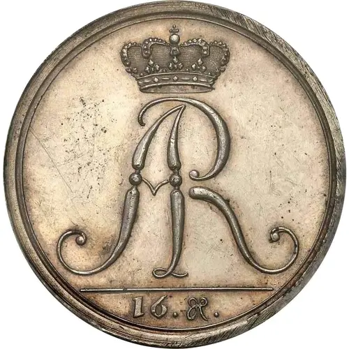 | Obverse description | Crowned script AR monogram, 16 GR below. |