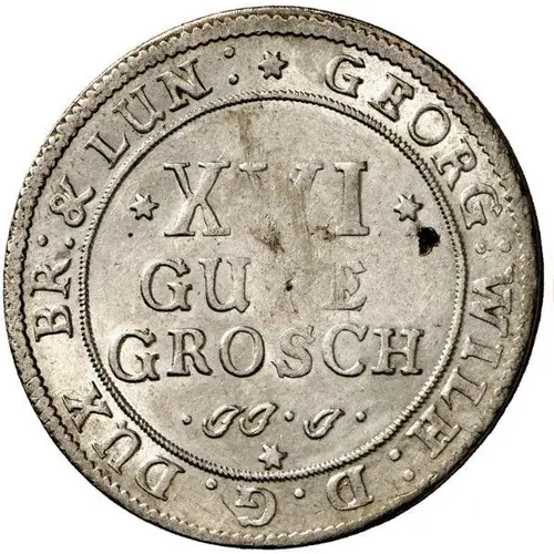 | Obverse lettering | DUX BR:& LUN: GEORG:WILH:D.G. XVI GU.TE GROSCH: .JJ.J. |