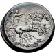 | Reverse description | Nike driving fast quadriga right, reins in both hands and kentron in right; ΞΑ below horses` forelegs |