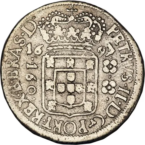 | Obverse lettering | PETRVS·II·D·G·PORT·REX·E·BRAS·D· 1695/1697 160 (Translation: Pedro II, by the Grace of God, King of Portugal and Lord of Brazil.) |