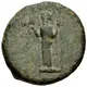 Descripción del anverso Facing cult statue of Zeus Labraundos