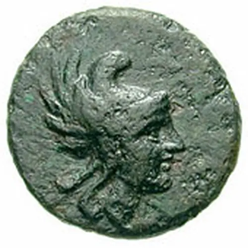 Obverse description Head of Perseus facing right, wearing winged Phrygian helmet