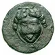 Reverse description Gorgoneion facing with a harpa below