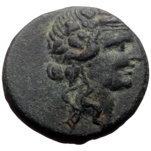 | Obverse description | Head of Dionysos right wreathed in ivy. |