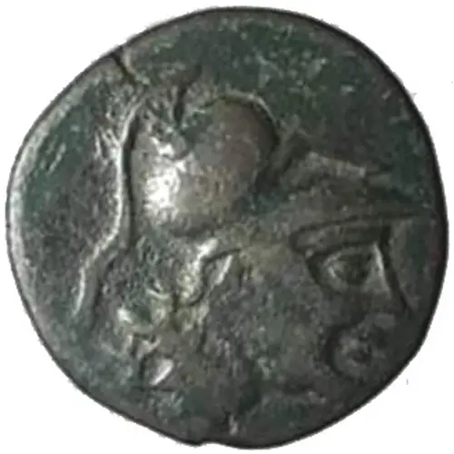 | Aversbeschreibung | Helmeted and draped bust of Athena facing right |