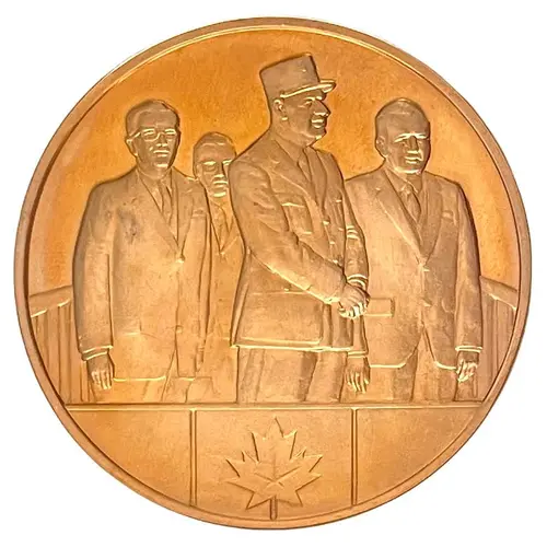 | Описание аверса | Charles de Gaulle on a platform with Quebec Premier Daniel Johnson in Montreal. Canadian flag underneath. |