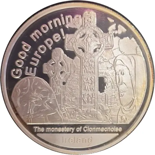 | Obverse lettering | Good morning Europe! The monastery of Clonmacnoise Ireland |