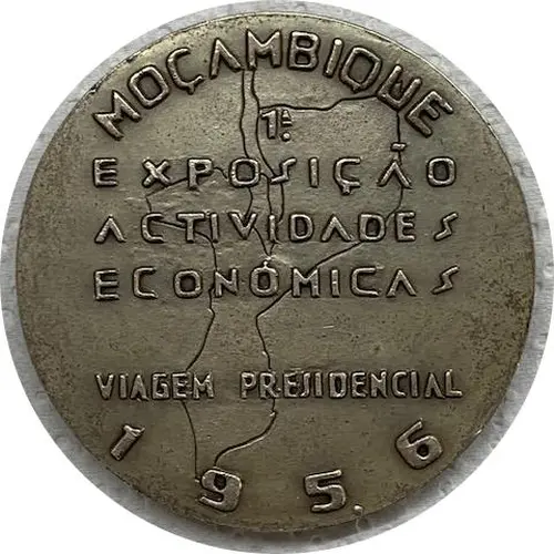 | Obverse lettering | MOÇAMBIQUE 1ª EXPOSIÇÃO ACTIVIDADES ECONÓMICAS VIAGEM PRESIDENCIAL 1956 |