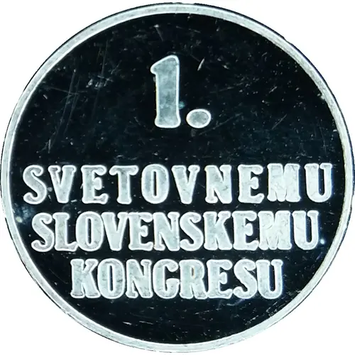 | Obverse lettering | 1. SVETOVNEMU SLOVENSKEMU KONGRESU |