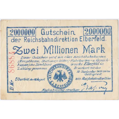 | Issuer | City of Elberfeld (Prussian province of Rhine) |