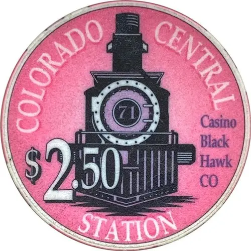 | Obverse lettering | COLORADO CENTRAL $2.50 Casino Black Hawk CO STATION |