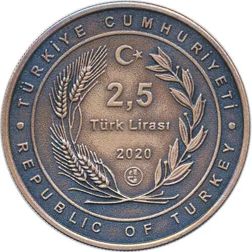 | Obverse lettering | TÜRKİYE CUMHURİYETİ 2,5 Türk Lirası 2020 REPUBLIC OF TURKEY |