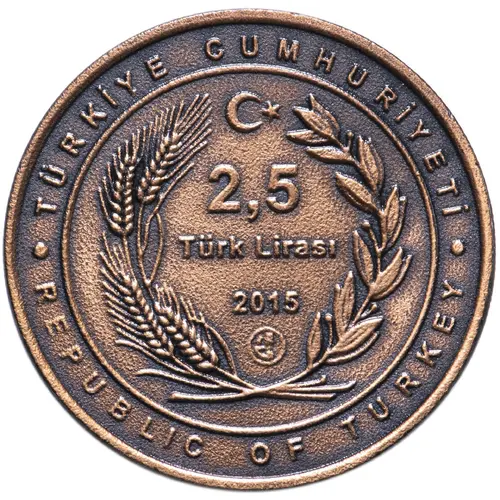 | Obverse lettering | TÜRKİYE CUMHURİYETİ REPUBLIC OF TURKEY 2,5 Türk Lirası 2015 |